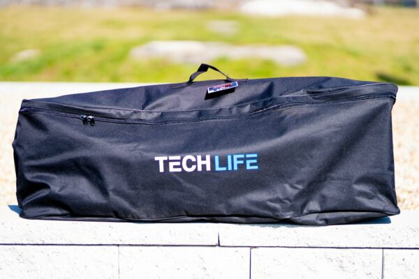 Pokrowiec dedykowany dla modeli Techlife X5 i X6. Zapewnia bezpieczny transport naszej hulajnogi, gdy wybieramy się na wakacje lub chcemy bezpiecznie przetransportować nasze urządzenie bez narażania go na uszkodzenia mechaniczne, dzięki czemu dłuższy czas zachowamy idealny wygląd. Sprawdzi się też w okresie jesienno-zimowym w celu przechowywania, gdy nie chcemy, żeby sprzęt stał i się kurzył. Pokrowiec jest wykonany z solidnej tkaniny PVC 600D, która jest odporna na uszkodzenia mechaniczne i wodoodporna. Poprzez swoją wielofunkcyjność sprawdzi się też do przechowywania innych urządzeń elektrycznych lub utrzymania porządku.